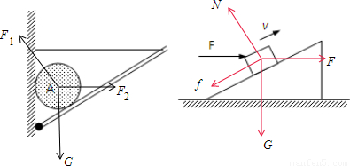 【答案】分析:受力分析时要严格按受力分析的顺序分析,从而防止添力或漏力.顺序:先重力和外力(题目直接给的外力)后接触力,分析接触力时先分析弹力再分析摩擦力.