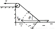 拉绳子的速度v等于船沿绳子收缩方向的分速度,由几何关系,得到