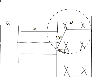 (2)若微粒射出偏转电场时的偏转角为θ=30°,并接着进入一个方向垂直于纸面向里的匀强磁场区,则两金属板间的电压U2是多大?