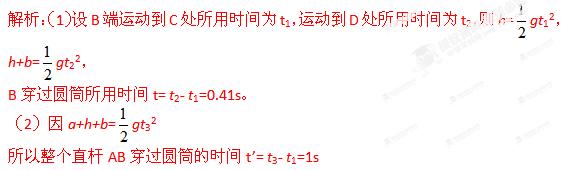 (1)直杆下端B穿过圆筒的时间t。