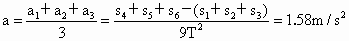 各位移差与平均值最多相差 0.05cm,即各位移差与平均值最多相差3.2%.由此可得出结论:小车在任意两个连续相等的时间内的位移之差,在误差允许范围内相等,所以小车的运动是匀加速直线运动.(2) 采用逐差法,即