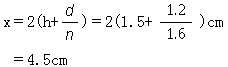 厚度d=1.2cm的平行玻璃板, 后表面镀银, 一个点光源放在与平板的前表面相距h=1.5cm处, 光线在板的后表面上反射, 在前表面上折射, 垂直表面观察时像和光源的距离x为_____cm(玻璃板的折射率n=1.6)(保留一位小数)