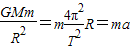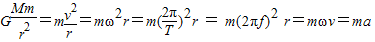 由万有引力定律的公式和向心的公式有: