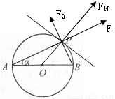 如图所示,电荷量为Q1、Q2的两个正点电荷分别置于A点和B点,两点相距L.在以L为直径的光滑绝缘半圆环上,穿着一个带电小球+q(视为点电荷),在P点平衡.不计小球的重力,那么,PA与AB的夹角α与Q1、Q2的关系应满足( )A.