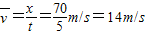 一个做直线运动的物体,在t=5s内速度从v=12m/s,增加到vt=18m/s,通过的位移是s=70m,这个物体5s内的平均速度是( )