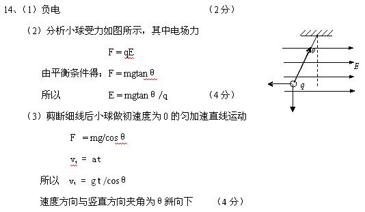 【小题3】若在某时刻将细线突然剪断,求经过t时间小球的速度v。