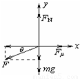 【解析】木块匀速运动时受到四个力的作用:重力mg、推力F、支持力FN、摩擦力Fµ.沿水平方向建立x轴,将F进行正交分解,如图所示。