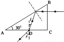 由几何关系得,入射角i=30°,小于临界角,则光线在AC面上不发生全反射.