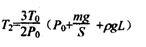 (2)温度升高到T2为多少时,两管液面高度差为L。