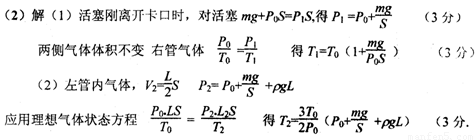 (1)温度升高到T1为多少时,右管活塞开始离开卡口上升;