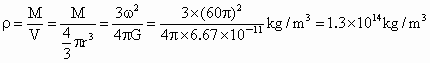 中子星是由中心组成的密集星体,具有极大的密度.己知某中子星的自转角速度ω=60πrad/s,为使该中子星不因自转而瓦解,其密度至少为多大?又已知某中子星的密度是
