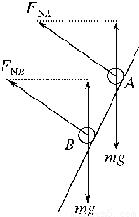 对A、B两球进行受力分析,两球均只受重力和漏斗给的支持力FN.如图所示.