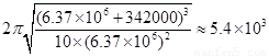 神舟五号载人飞船在绕地球飞行的第5圈进行变轨,由原来的椭圆轨道变为距地面高度h=342km的圆形轨道。已知地球半径
