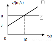 解:(1)由图象知,甲做匀加速直线运动,乙做匀速直线运动