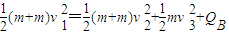对AB组成的系统由动量守恒定律得:mv=(m+m)v1