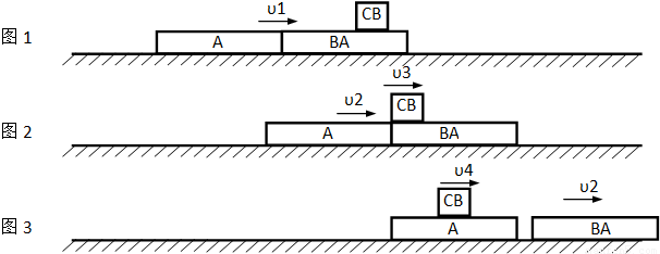C以速度υ3离开B滑上A后,AB分离,B以速度υ2匀速运动,C和A相互作用至达到共同速度υ4,如图3所示.