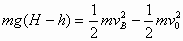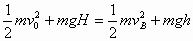 解:(1)由机械能守恒定律得,A点时的机械能 代入数据解得, (2) 代入可解得 另解 代入可解得 把小球到达B点时的速度进行正效分解,如图所示 由图可得, (3) 综合可解得