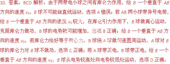 (2012年3月江苏省苏北四星级高中联考)如图所示,把一个带电小球A固定在光滑的水平绝缘桌面上,在桌面的另一处有另一带电小球B,现给B一个垂直于AB方向的速度v0,则下列说法中正确的是 ( )