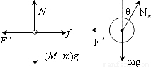 根据平衡条件有:N-(M+m)g=0,F′=f,可得:N=(M+m)g.