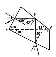 一个玻璃棱镜的主截面如图所示,玻璃的折射率为1.56,一条光线从a点射入棱镜后,沿ab行进,ab平行cd,试画出光线所走的路径,并计算光线经过棱镜发生的偏向角.