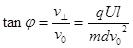 如图所示,在真空中水平放置一对平行金属板,板间距离为d,板长为l,加电压U后,板间产生一匀强电场,一质子以初速v0垂直电场方向射入匀强电场,求质子射出电场时的速度大小、方向和偏转距离。![]()