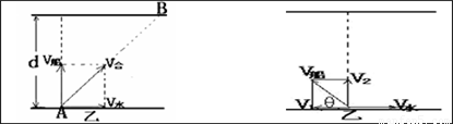 (2)如图所示,要使航程最短,船头应该与河岸成θ角度,
