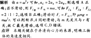 当转台转速增大时,B比A先滑动