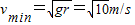 (2)为使小杯经过最高点时水不流出,在最高点时最小速率为