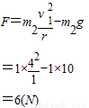 如图所示,质量为m1=0.5kg的杯子里盛有m2=1kg的水,用绳子系住水杯在竖直平面内做“水流星”表演,转动半径为r=1m,水杯通过最高点的速度为v1=4m/s,g=10m/s2.求:(1)在最高点时,水对杯底的压力.