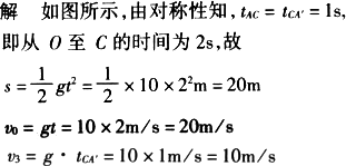 在距地面高25 m处竖直上抛一球,第1 s末及第3 s末先后经过抛出点上方15 m处,试求:上抛的初速度,最大高度和第3 s末的速度.