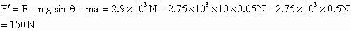 质量是2.75t的载重汽车,在2900N的牵引力作用下,由静止开上一个山坡,沿山坡每前进1m,升高0.05m,汽车前进100m时,速度达到36km/h,求汽车在前进中所受的摩擦力.(