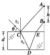 作出如图所示的光路,△CDE为等边三角形,四边形ABEC为梯形,CE=AB=h.玻璃的厚度d就是边长h的等边三角形的高.