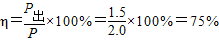 µç¶¯»úÕý³£¹¤×÷ʱÊä³ö¹¦ÂÊΪP³ö=P-PËð=2.0-0.5 W=1.5 W£¬