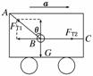 选D 如图所示,车加速时,球的位置不变,则AB绳拉力沿竖直方向的分力仍为FT1cos θ,且等于重力G,即FT1=