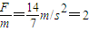 如图所示,光滑水平面上,有一个质量m=7kg的物体,在F=14N的水平力作用下,由静止开始沿水平面做匀加速直线运动.求:(1)物体运动的加速度;(2)物体从静止开始运动,5s内通过的距离.