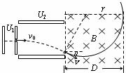 如图所示,一个质量为m=2.0×10-11kg,电荷量q = +1.0×10-5C的带电微粒(重力忽略不计),从静止开始经U1=100V电压加速后,水平进入两平行金属板间的偏转电场,偏转电场的电压U2=100V。金属板长L=20cm,两板间距d =