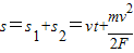 Æû³µÔÚ¼ÝʻԱ·´Ó¦Ê±¼äÄÚµÄÎ»ÒÆÎª£ºs2=vt