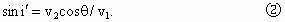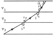 解析:声波在介质 2中的传播速度为因声波在不同温度的海水中的传播速度不同,故在两层不同温度的海水的交界面要发生折射,并应满足折射定律,故有 式中 i、r为潜艇发出的声波由海水的底层射入中层时,在交界面的入射角和折射角;