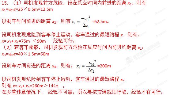 =144km/h;且晚上疲劳驾驶,反应时间增为t′=1.5s,则从司机发现危险到客车停止运动,客车通过的最短路程?并说明在此情况下经验是否可靠?