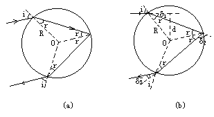 Óê¹ýÌìÇ磬ÈËÃdz£¿´µ½Ìì¿ÕÖгöÏֲʺ磬ËüÊÇÓÉÑô¹âÕÕÉäµ½¿ÕÖÐÃÖÂþµÄË®ÖéÉÏʱ³öÏÖµÄÏÖÏó£®ÔÚ˵Ã÷Õâ¸öÏÖÏóʱ£¬ÐèÒª·ÖÎö¹âÏßÉäÈëË®ÖéºóµÄ¹â·£®Ò»Ï¸Êø¹âÏßÉäÈëË®Ö飬ˮÖé¿ÉÊÓΪһ¸ö°ë¾¶ÎªRµÄÇò£¬ÇòÐÄOµ½ÈëÉä¹âÏߵĴ¹Ö±¾àÀëΪd£¬Ë®µÄÕÛÉäÂÊΪn£®