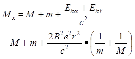 (12分)处于静止状态的原子核X,进行α衰变后变成质量为M的原子核Y。被放出的α粒子垂直进入磁感应强度为B的匀强磁场时,测得它做圆周运动的轨道半径为r。已知α粒子的质量为m,基元电荷电量为e。假如衰变释放的能量全部转化为Y核和α粒子的动能。求:衰变前的原子核X的质量MX。
