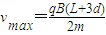 | C、保持d和L不变,增大B,射出粒子的最大速度与最小速度之差增大 | ||