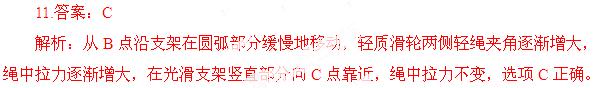 (2012年2月福建晋江四校第二次联考)在上海世博会最佳实践区,江苏城市案例馆中穹形门窗充满了浓郁的地域风情和人文特色.如图所示,在竖直放置的穹形光滑支架上,一根不可伸长的轻绳通过轻质滑轮悬挂一重物G.现将轻绳的一端固定于支架上的A点,另一端从B点沿支架缓慢地向C点靠近(C点与A点等高).则绳中拉力大小变化的情况是 ( )