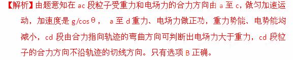 (2013山东省临沂市质检)如图,平行板电容器的两个极板竖直放置,并接直流电源。若一带电粒子恰好能沿图中轨迹穿过电容器,a到c是直线,由于电极板边缘效应,粒子从c到d是曲线,重力加速度为g,则该粒子