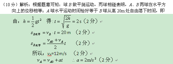 /s向右匀加速直线运动.同时,在A球的正上方高h=20m处,另一小球B以水平速度vB=10m/s向右抛出,球B落地时刚好砸在小球A上,不计空气阻力,g取10m/s2,求: