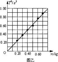 ȡһҪÇáÖÊÈõ»É£¬É϶˹̶¨ÔÚÌú¼Ų̈ÉÏ£¬Ï¶Ëϵһ½ðÊôСÇò£¬Èçͼ¼×Ëùʾ£®°ÑСÇòÑØÊúÖ±·½ÏòÀÀëÆ½ºâλÖúóÊÍ·Å£¬Ð¡Çò½«ÔÚÊúÖ±·½Ïò×ö¼òгÔ˶¯(´Ë×°ÖÃÒ²³ÆÊúÖ±Èõ»ÉÕñ×Ó)£®Ò»Î»Í¬Ñ§ÓôË×°ÖÃÑо¿ÊúÖ±Èõ»ÉÕñ×ÓµÄÖÜÆÚTÓëСÇòÖÊÁ¿mµÄ¹ØÏµ£®Ëû¶à´Î»»Óò»Í¬ÖÊÁ¿µÄСÇò²¢²âµÃÏàÓ¦µÄÖÜÆÚ£¬ÏÖ½«²âµÃµÄÁù×éÊý¾Ý£¬Óá°¡¤¡±±êʾÔÚÒÔmΪºá×ø±ê¡¢T2Ϊ×Ý×ø±êµÄ×ø±êÖ½ÉÏ£¬ÈçͼÒÒËùʾ£®