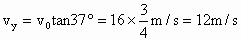 以16m/s的速度水平抛出一石子,石子落地时的速度方向与抛出时的速度方向成37°角.不计空气阻力,那么石子抛出点与落地点的高度差是多少?(取