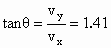 θ =55°按题意作图.物体在水平方向不受力,所以加速度为 0,速度总等于初速度 |