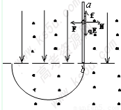 ②小球在沿杆向下运动时,受力情况如图,向左的洛仑兹力F,向右的弹力N,向下的电场力qE,向上的摩擦力f.