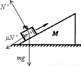 【答案】分析:物体先减速上滑,后加速下滑,加速度一直沿斜面向下;对整体受力分析,然后根据牛顿第二定律求解地面对物体M的摩擦力和支持力;对小滑块受力分析,根据牛顿第二定律分析m的加速度情况.